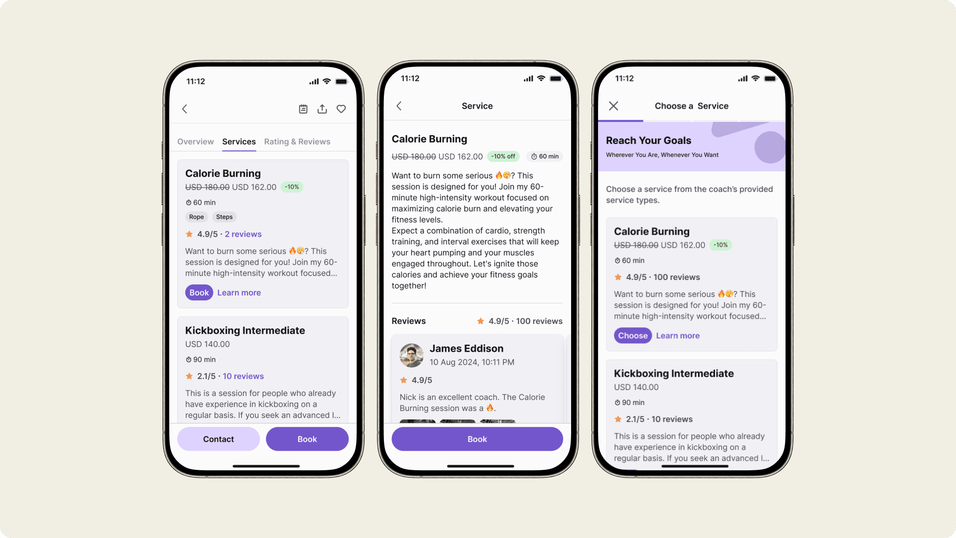 Users can choose and read more about a service they interested in and books the session either from services or details page.