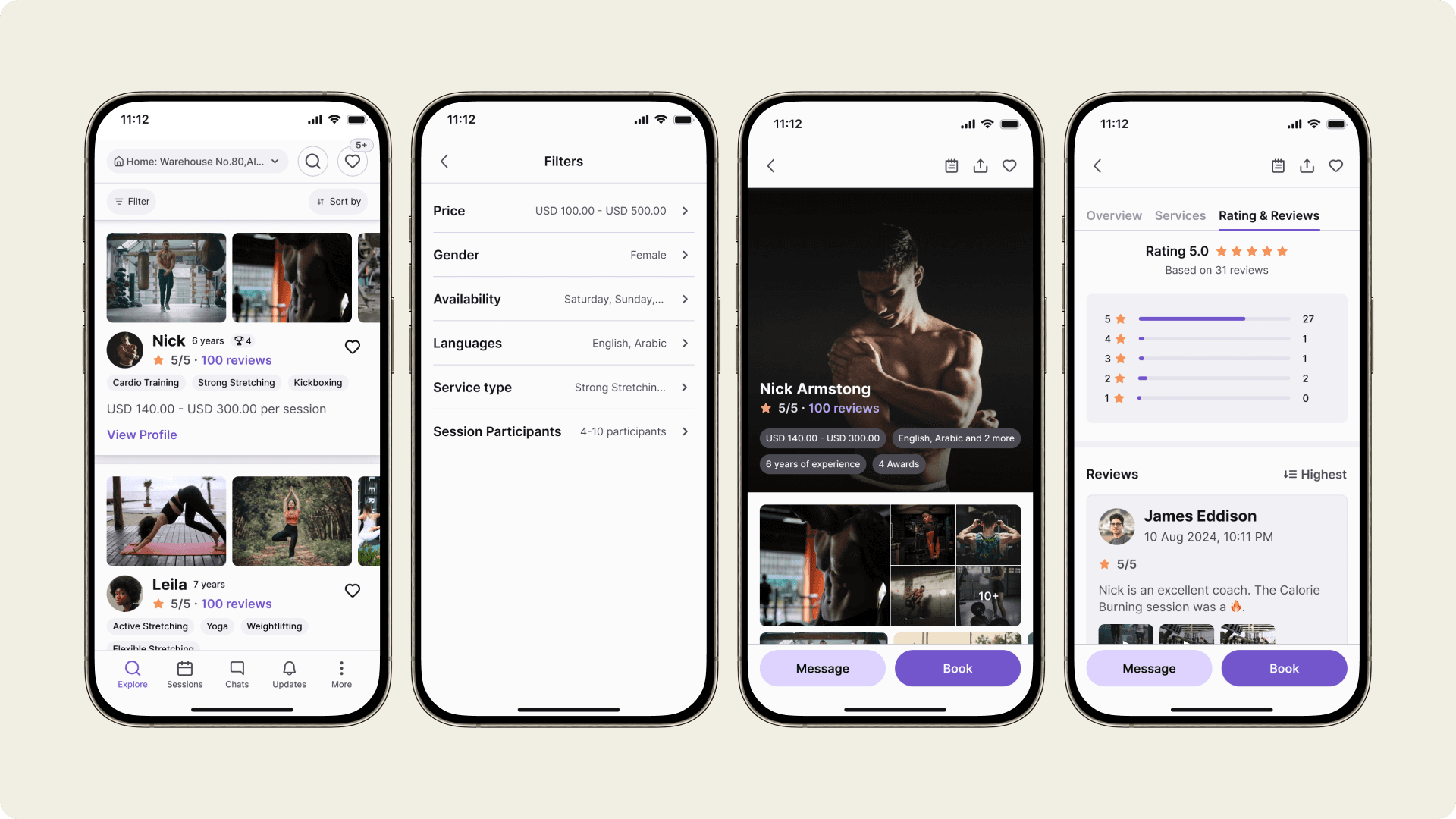 Users can filter and sort coaches by location, service type, and ratings, ensuring quick access to the most relevant options. The saved feature allows users to bookmark favorite coaches for easy future bookings.